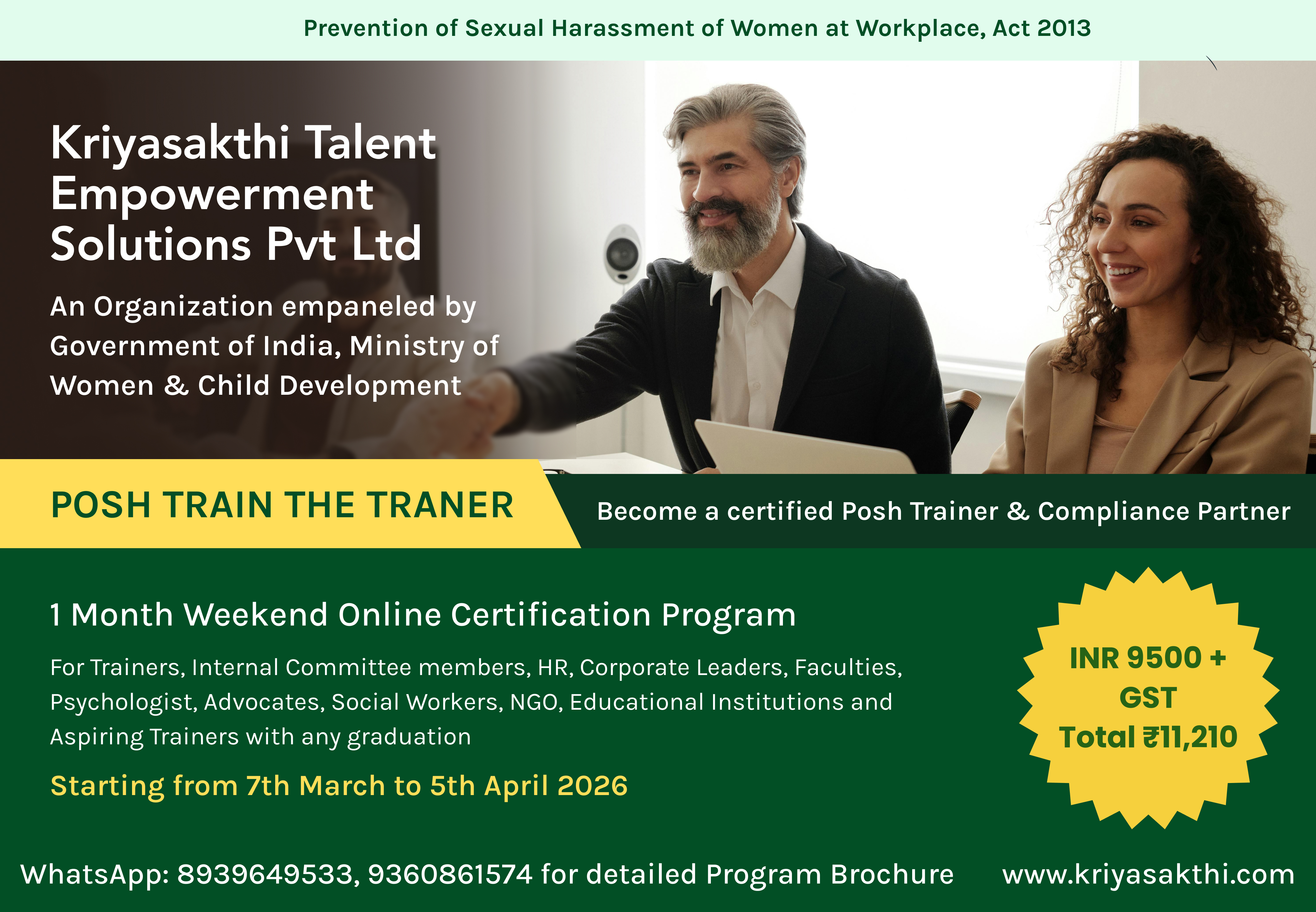 Kriyasakthi Grooms Aspirants to become POSH Trainers with our POSH Train the Trainer Certification Program